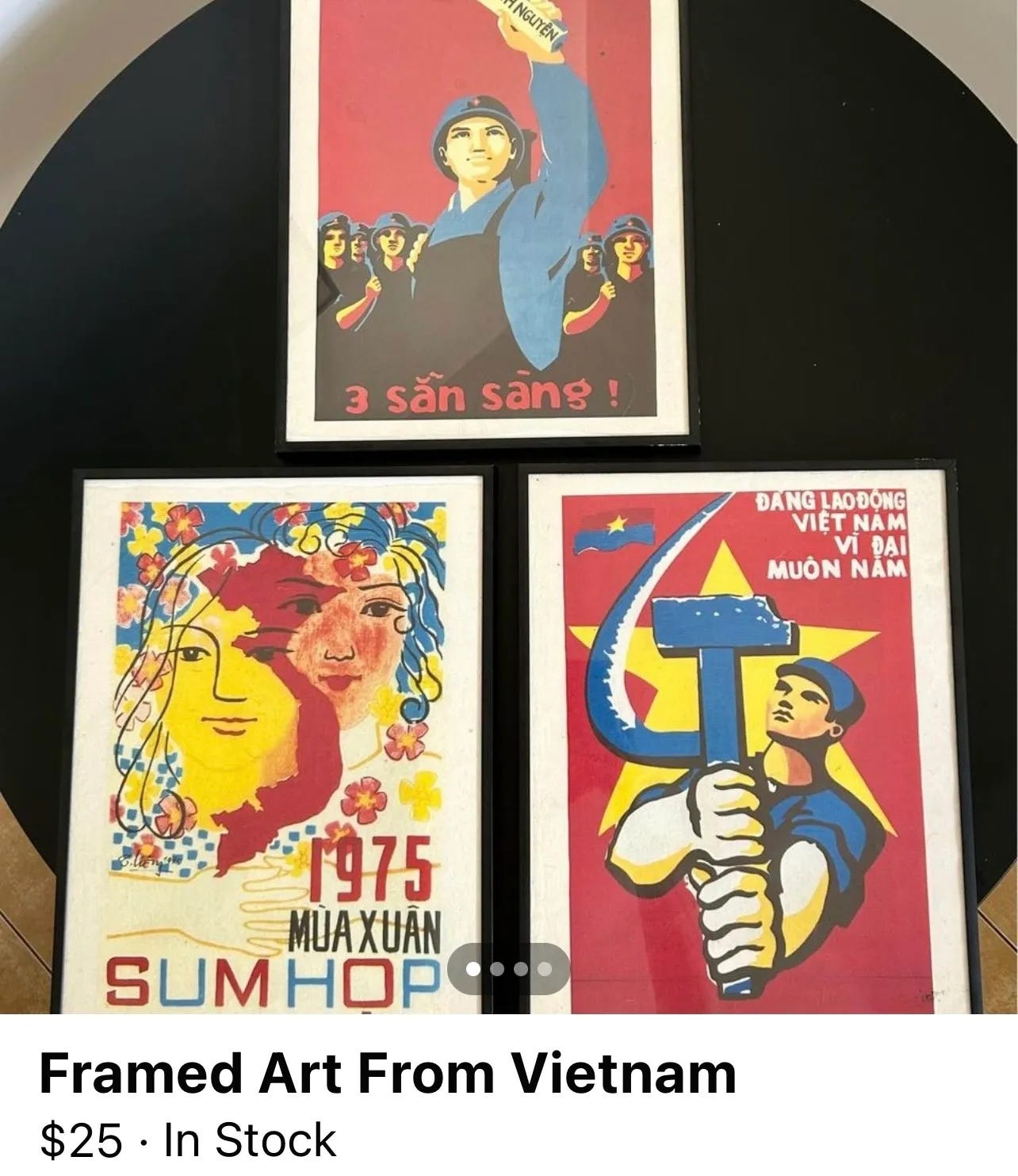I was desperate to sell a set of three posters I purchased with a friend in Hanoi, Vietnam. Later when we became roommates in downtown Los Angeles, we hung each above the couch in a diagonal line. We liked the idea of art with a shared origin: “Thanks! We got them in Vietnam!” Later: “Honestly, we thought the pho was just as good in LA.” When she eventually moved out, I inherited the posters.