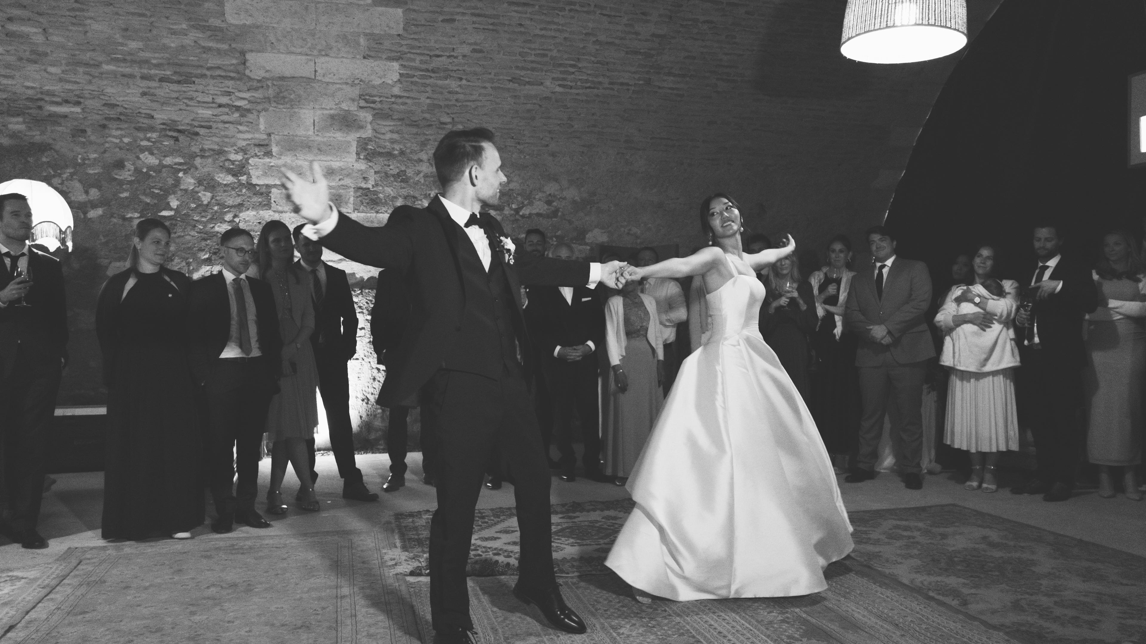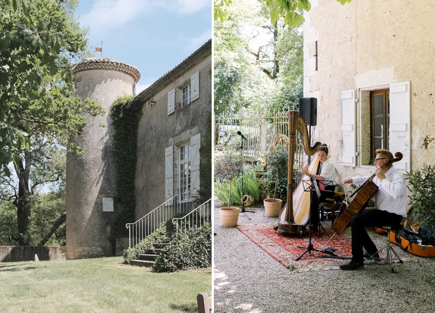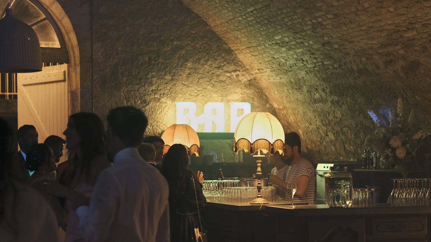 The chateau hosted all of the weekend’s events: a welcome dinner on Friday, a ceremony and reception on Saturday, and a farewell BBQ on Sunday. It sleeps up to 30 people, so our closest friends and family stayed with us, which gave the weekend a summer camp feel. Every morning, we woke to strong coffee, a breakfast spread including the butter-iest croissants you’ve ever smelled in your life, and a recap of the night before.